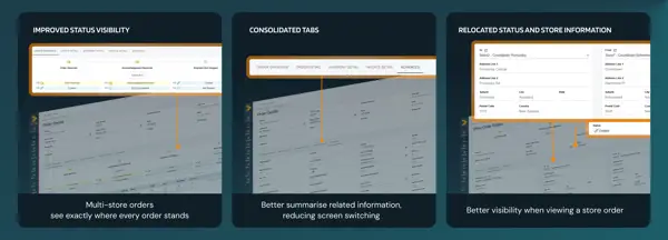 Navigate faster and complete tasks with fewer clicks. When a customer calls asking about their order status, you'll see order details, shipment tracking, and invoice information on one screen – no more switching between tabs while they're on hold.