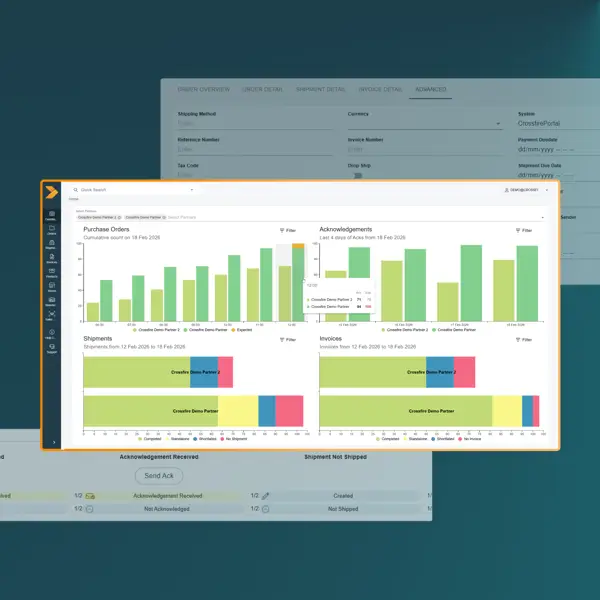 The Crossfire Customer Portal is a secure, cloud-based self-service tool that provides businesses with real-time visibility and control over their EDI and API integrations. It acts as a centralised hub where suppliers, wholesalers, and retailers can monitor and manage the electronic exchange of supply chain documents - such as orders, invoices, and shipments - in one place.