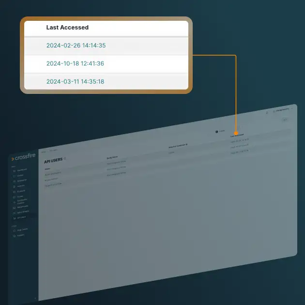 The Crossfire Customer Portal gives your team a simple way to generate API keys, define custom permissions, and monitor usage all from one secure interface.