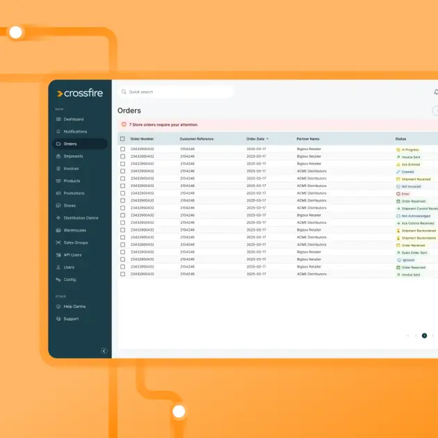 Crossfire’s fully-managed EDI service ensures smooth, hassle-free operations, while the Crossfire Customer Portal gives you the visibility and flexibility to take action when you need to.