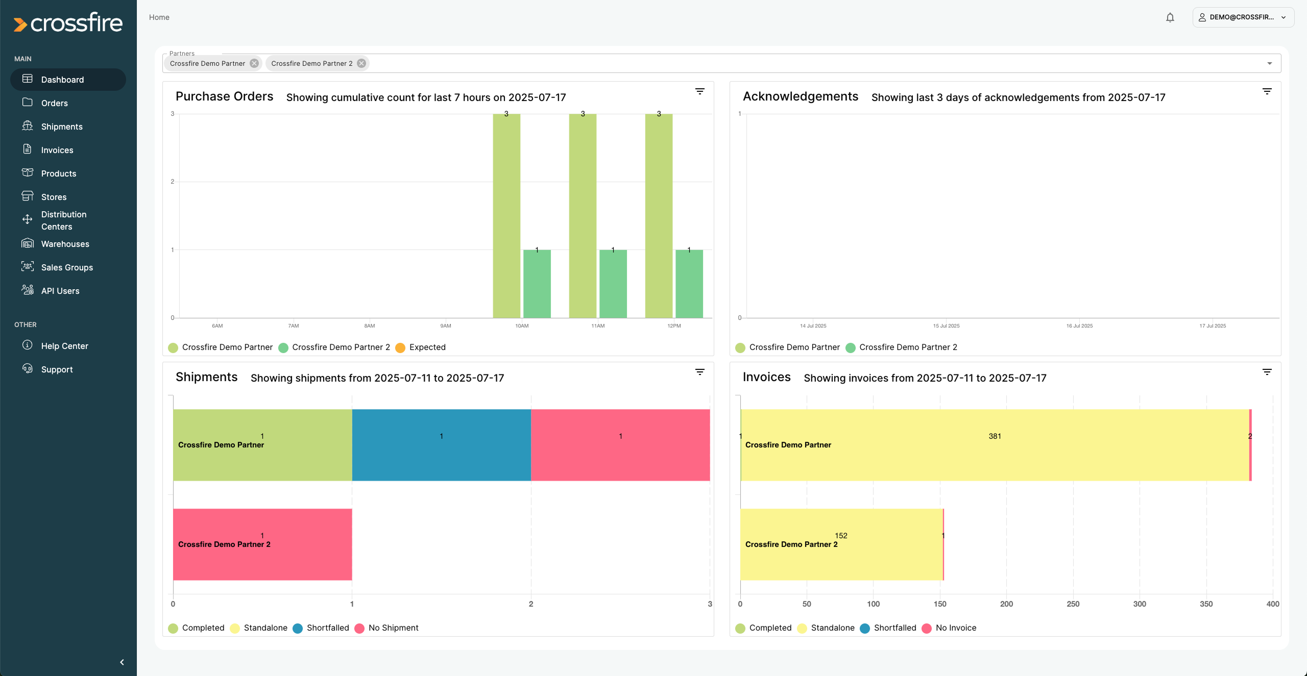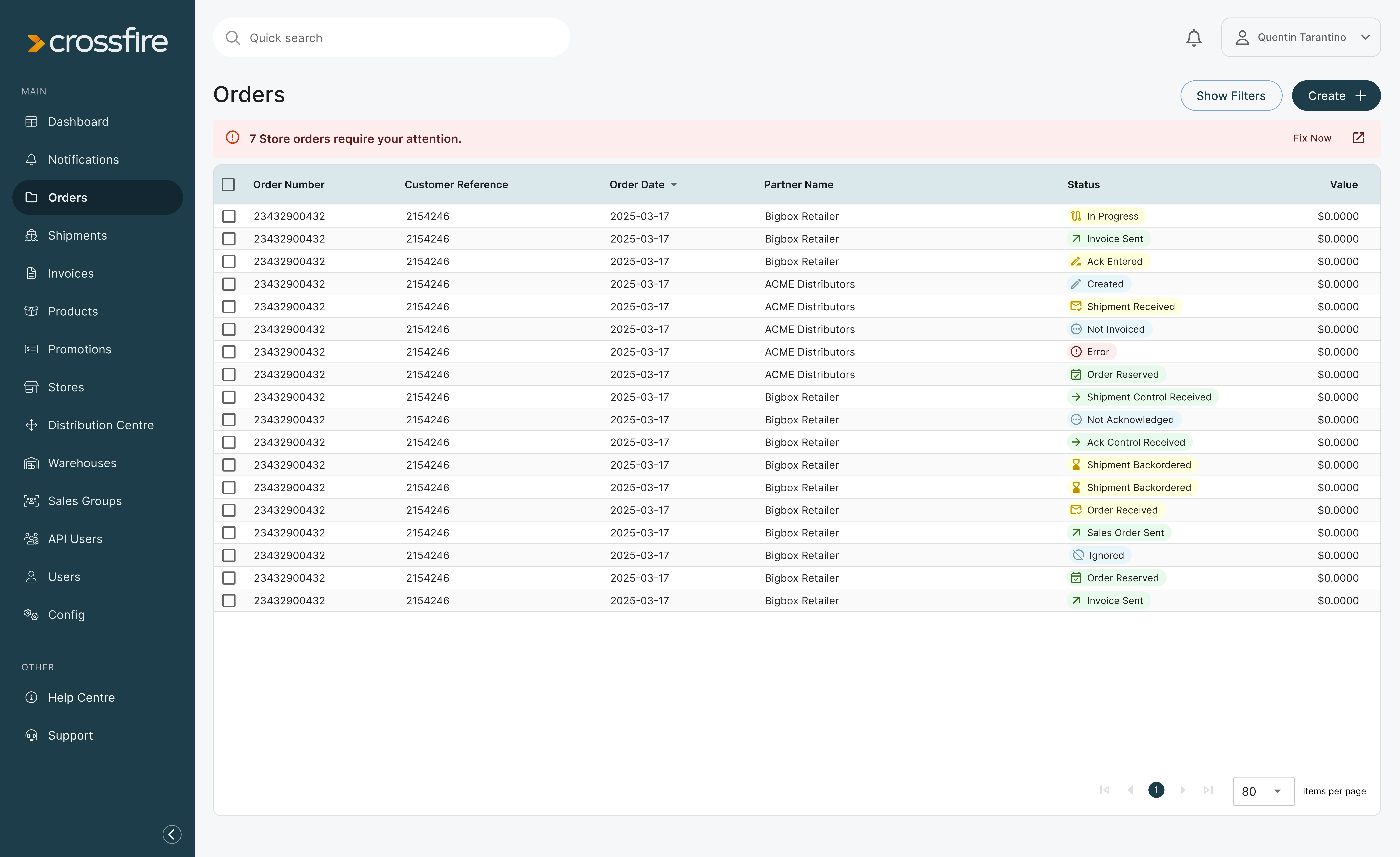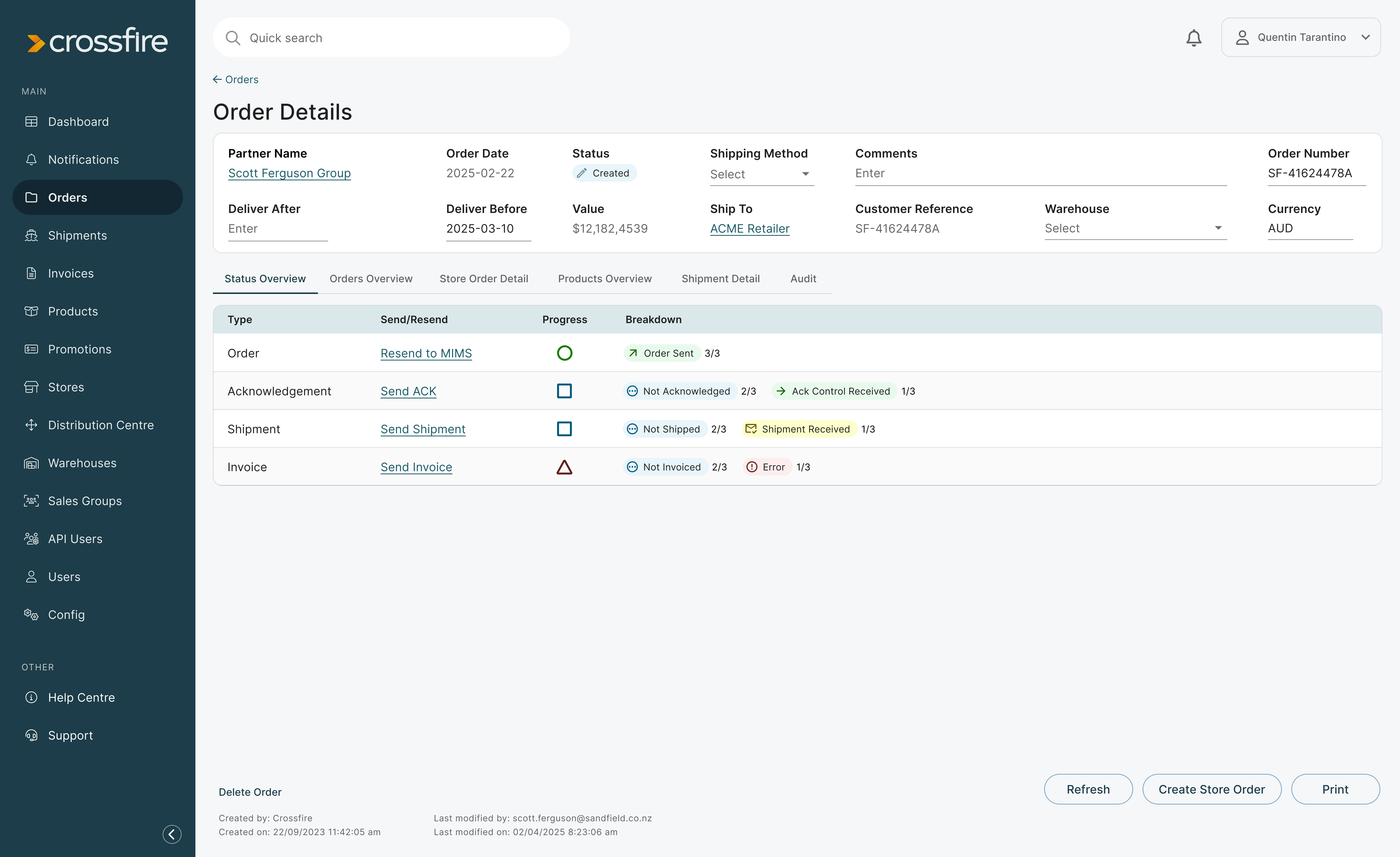 Make informed decisions with up to date information about an order’s status. Manage API user permissions, Product or Store data from within the Crossfire Portal.